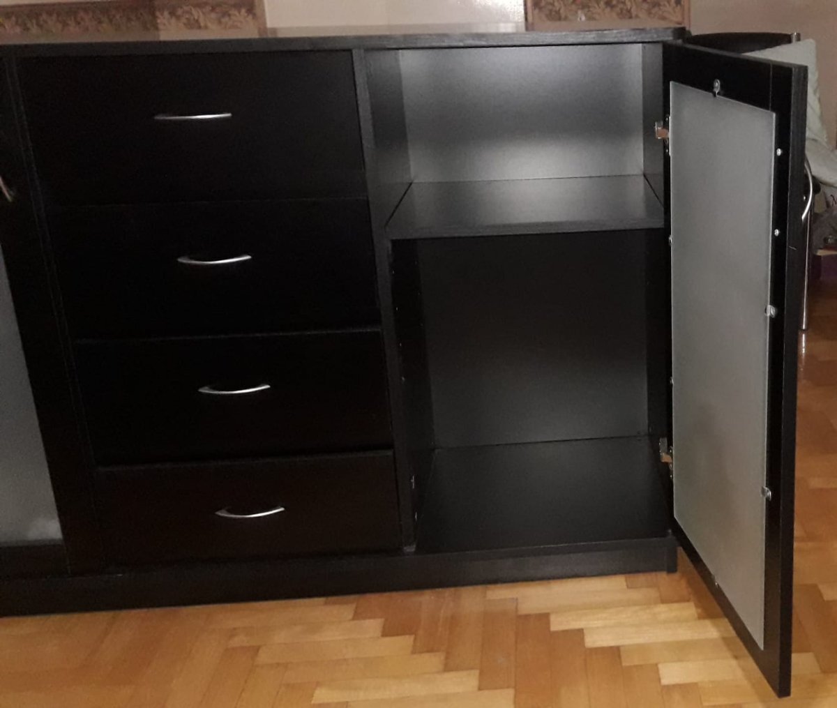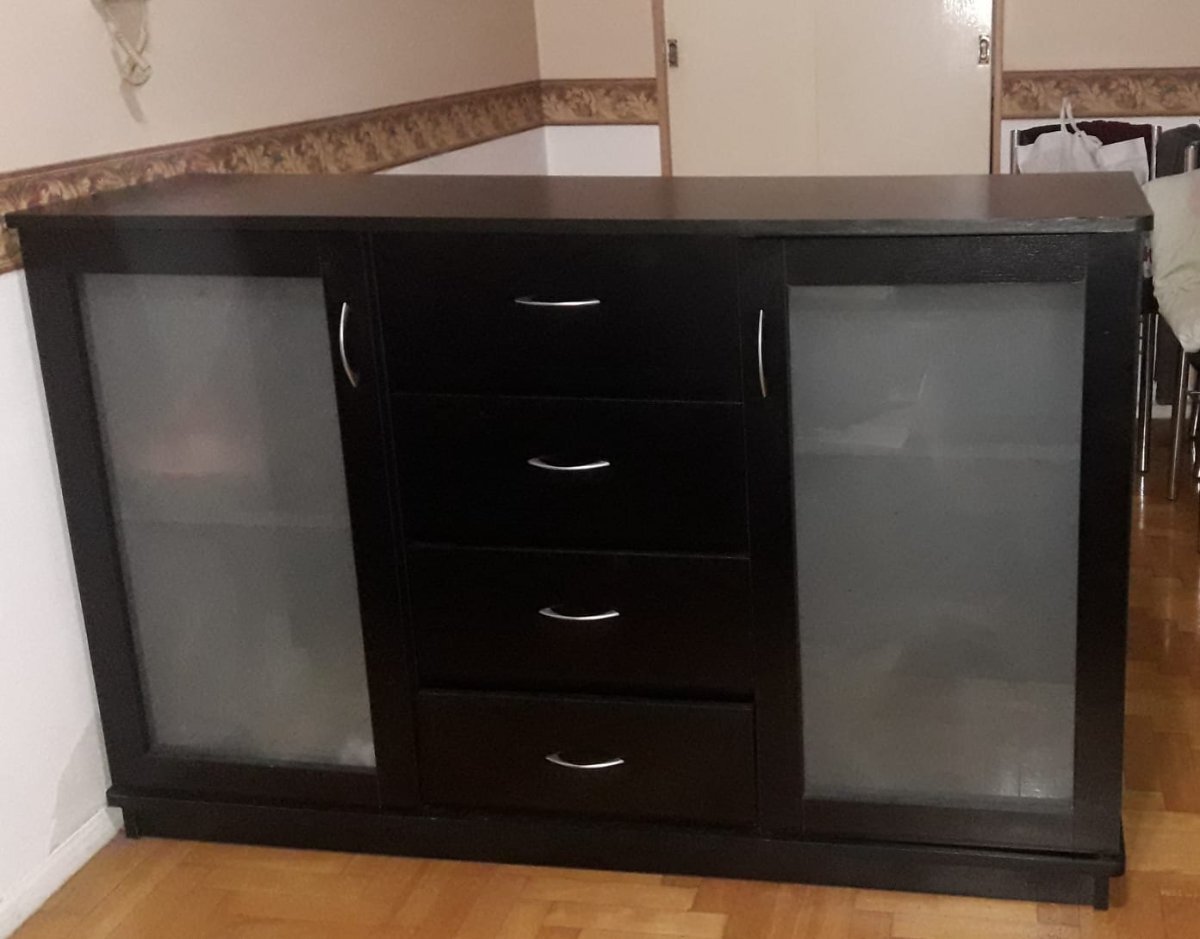 Bargueño vajillero negro, ancho 1.50, profundidad 42 y alto 95, de madera enchapado, con 2 puertas, 4 cajones grandes, mueble de categoria, poco uso, $900.000.